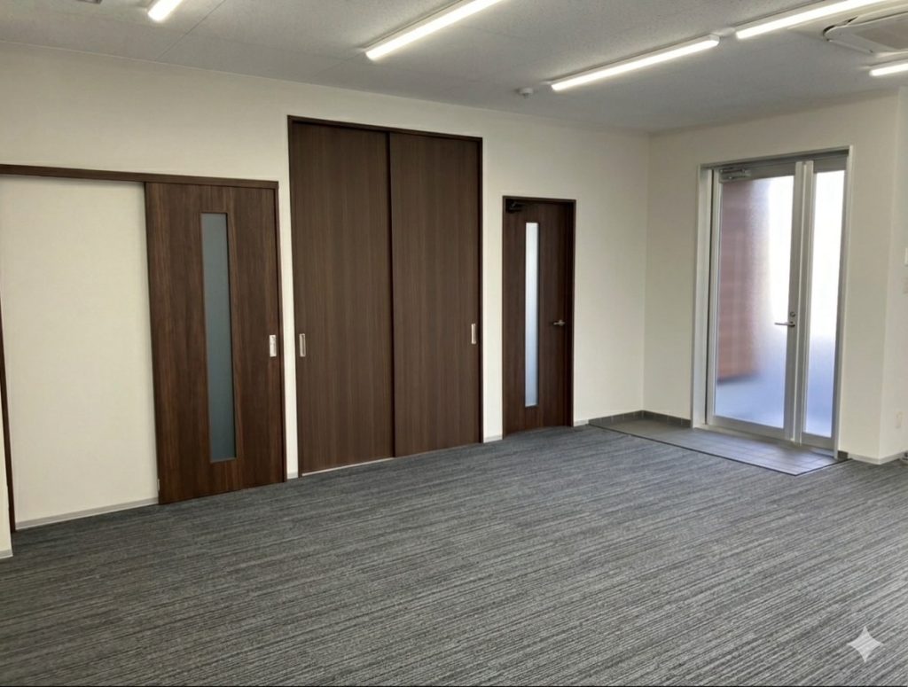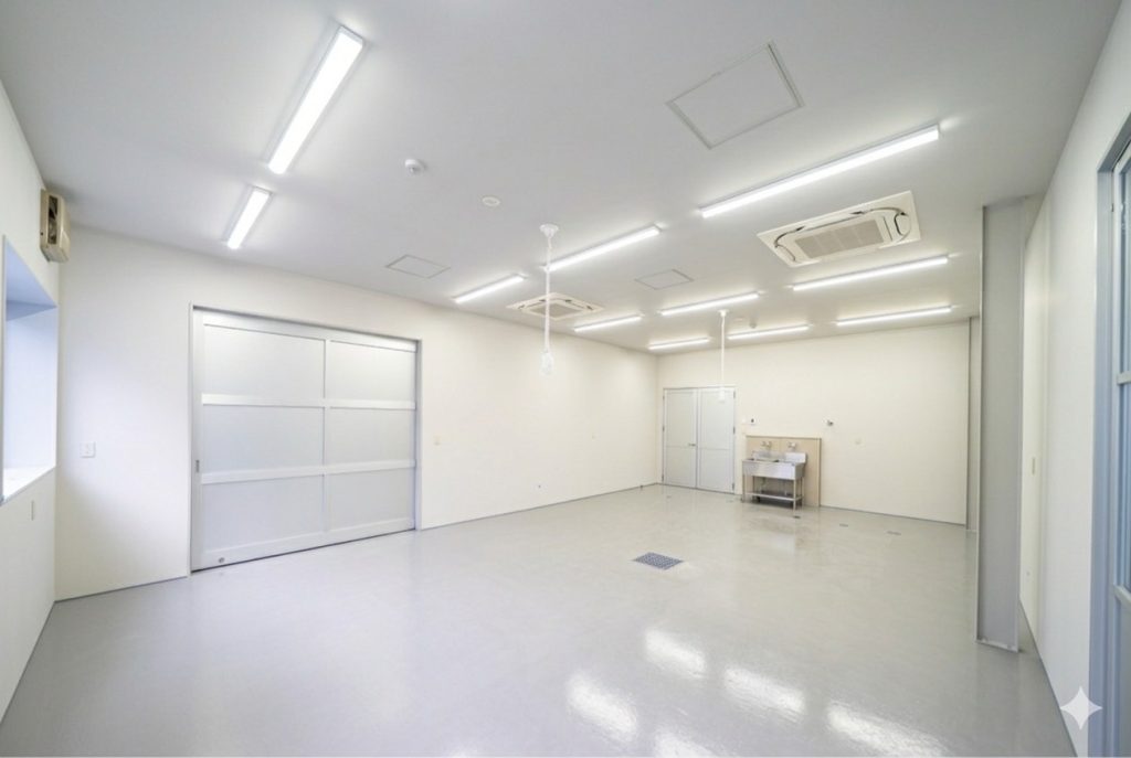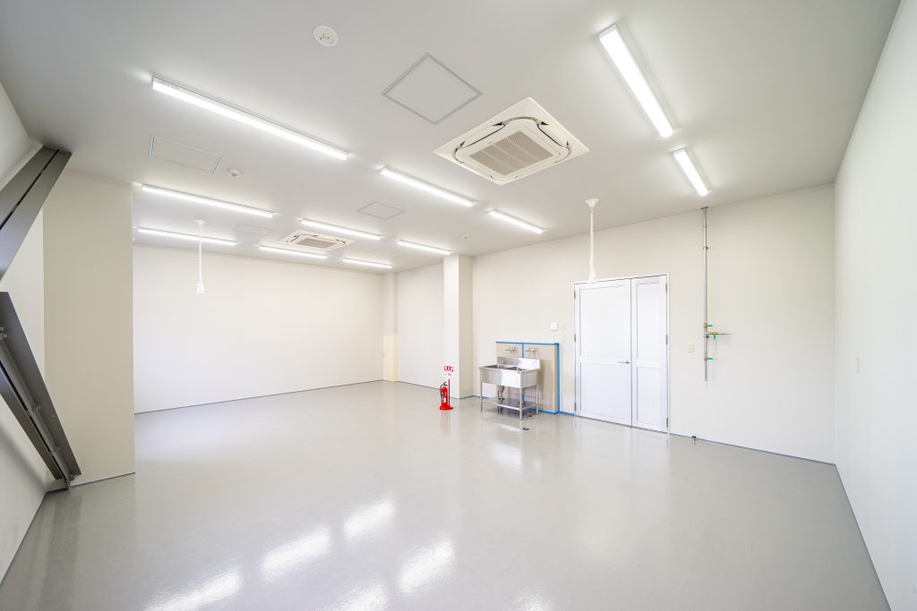 各作業場への進入開口は大きく取り、材料等のスムーズな搬入を可能とし、各部屋の作業内容(気密性、搬入性、最大限の開口利用)に合わせて建具の種類を変え、お施主様と入念な打ち合わせを行い、施工した。