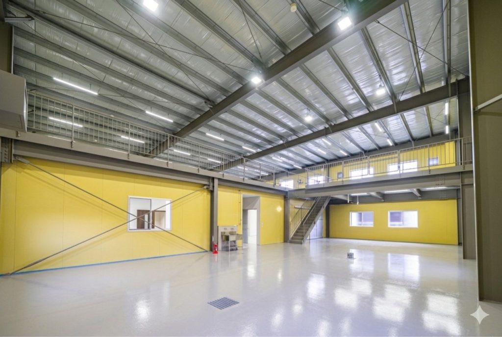 1階、2階倉庫部分の総延べ面積が451.75㎡を無柱とすることにより、自由で有効的な活用が可能となった。